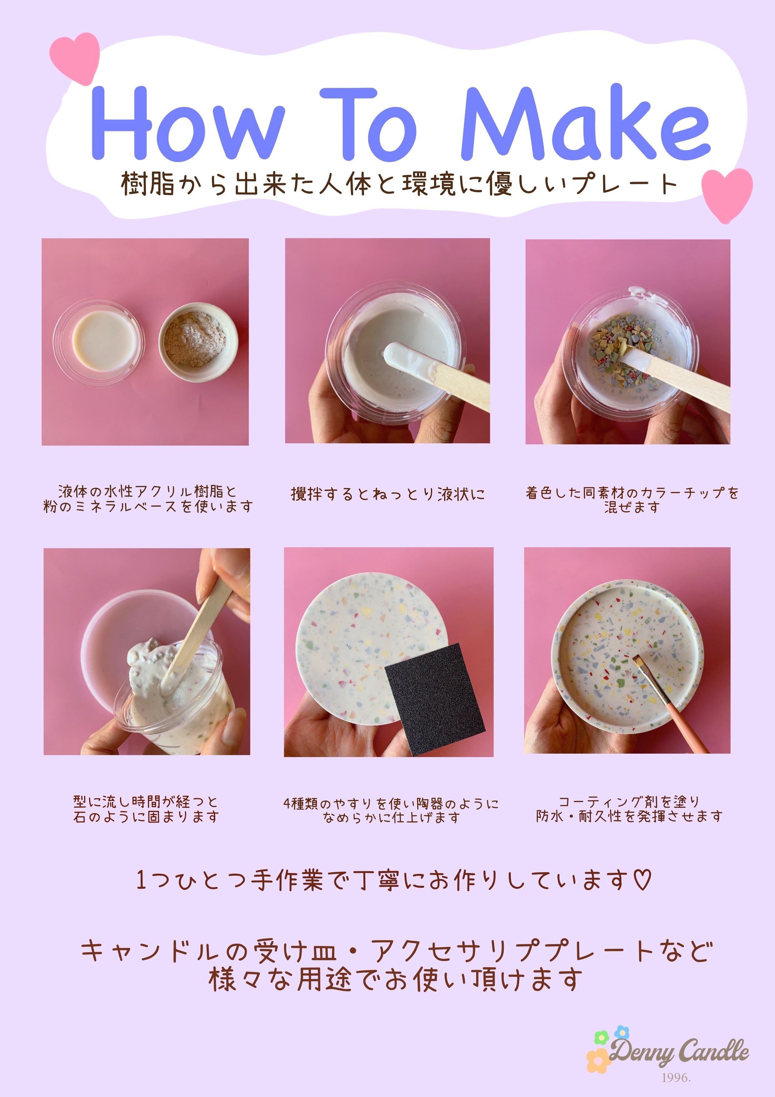Denny Candleで販売しているプレートはJESMONITE(ジェスモナイト)と呼ばれる有機溶剤を含まない樹脂から出来ています。